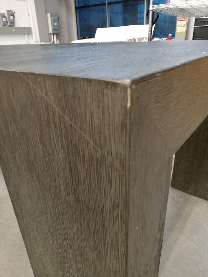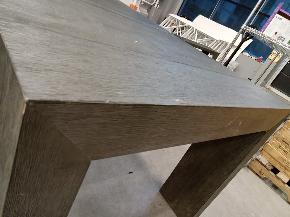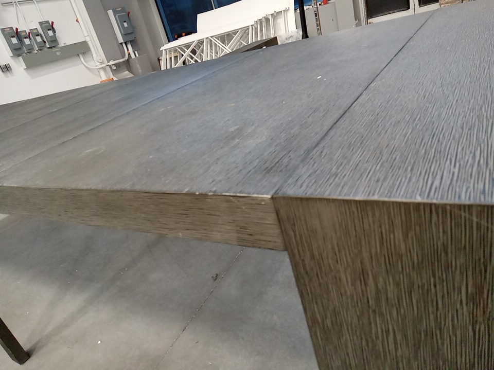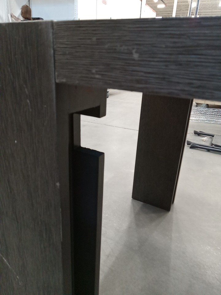 upon inspection we have found many scuffs, blemishes, fraying marks, wood splits and scratches on this item, this seems to be due to shipping and handling, all parts for usage are present and their sems to be no issue that would effect usage as this item has been fully set up and we found no issues. see photos below.