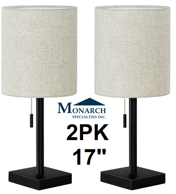 2pk monarch Specialties TABLE LAMP with usb port - 17" - black/beige (Model: 9650)