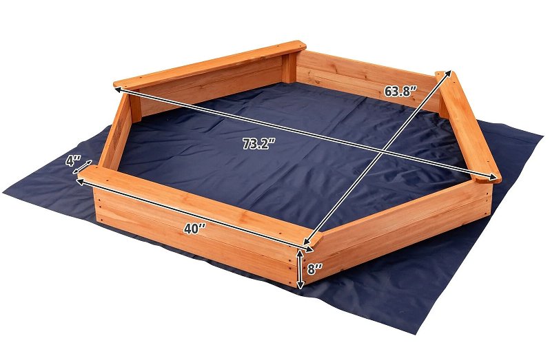 costway wooden hexagon cedar sand box - 73.2" x 63.8" x 8" - brown (model: ts10034)