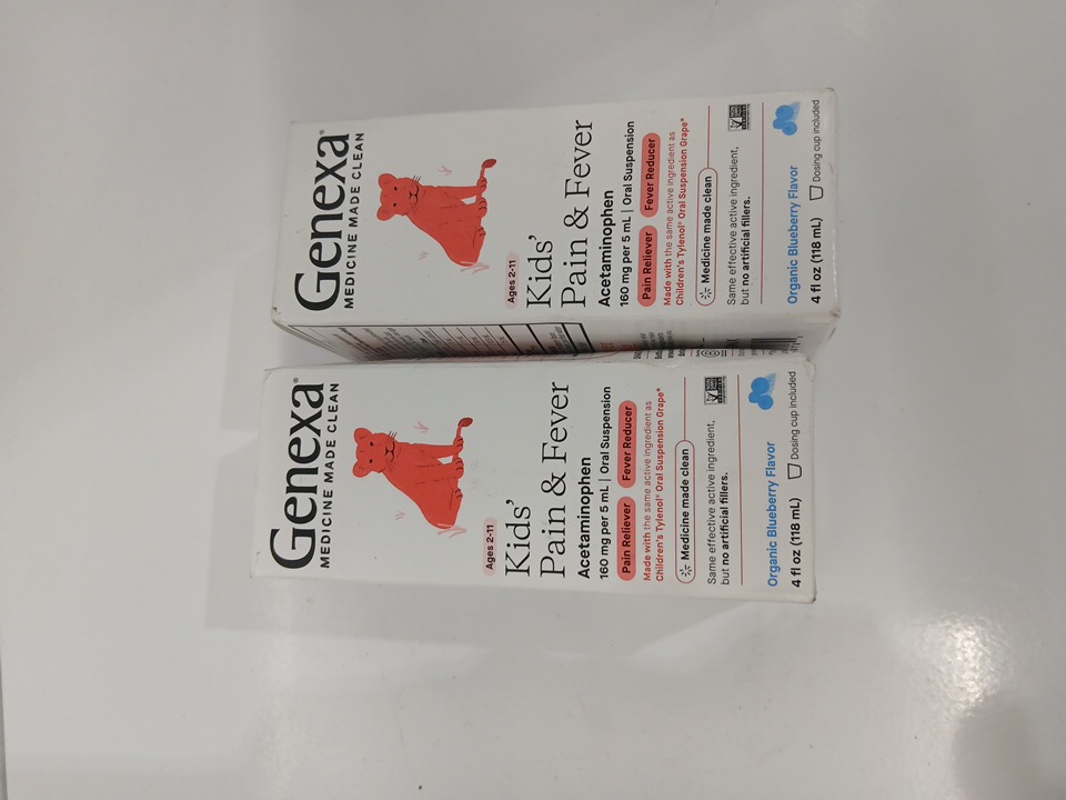 2 Genexa Kids' Pain & Fever Acetaminophen - 118ml - Gluten-Free Blueberry