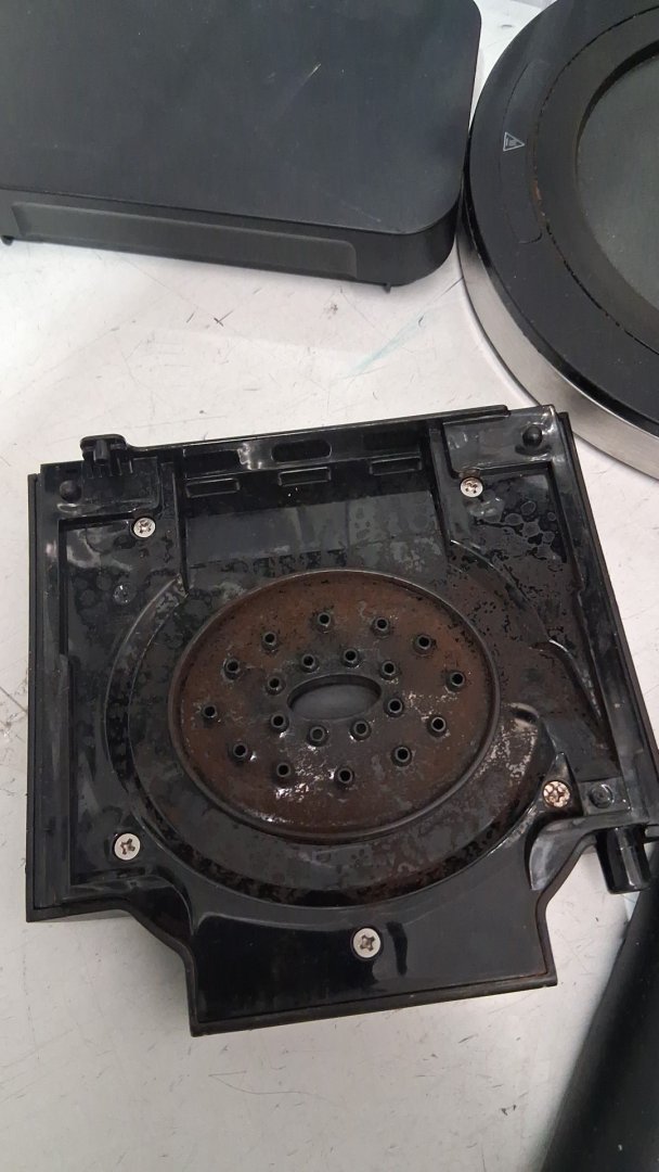 Item show signs of heavy use as there is burn marks where the pot sits as well as coffee grinds in the item itself