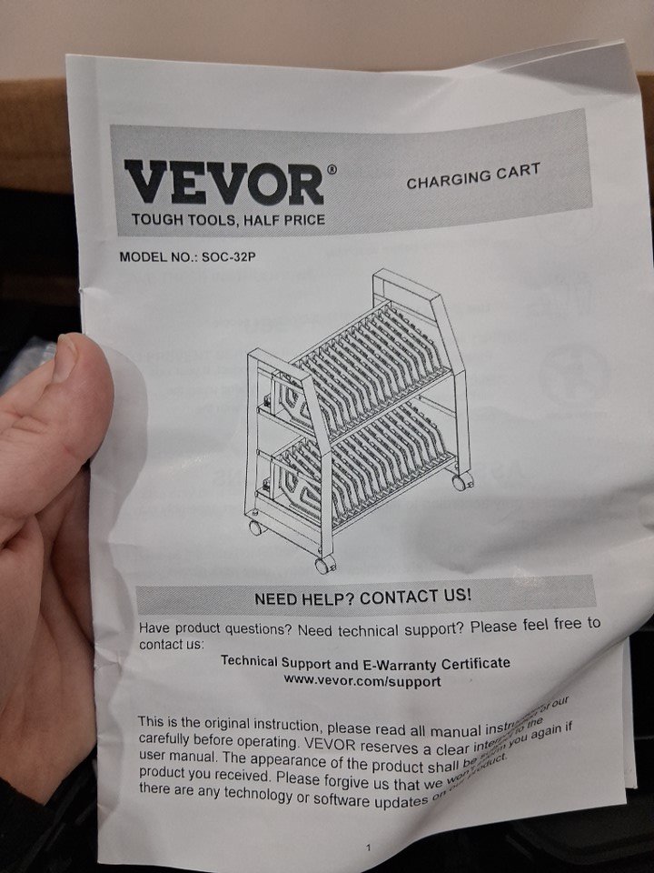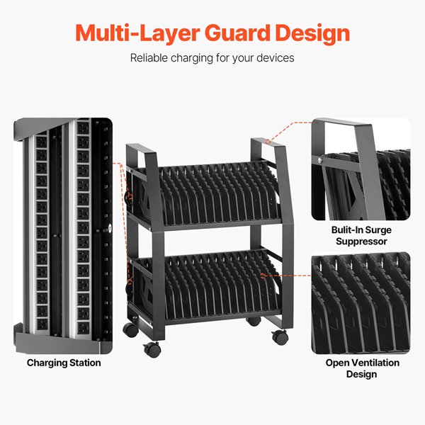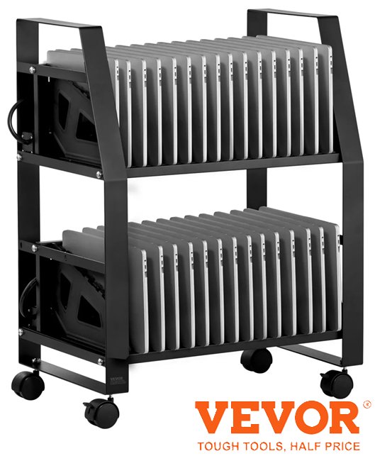 VEVOR Mobile Open Charging Station CART - HOLDS UP TO 32 DEVICES - SUPPORTS 15.6" Screens - BLACK (MODEL: SOC-32P)