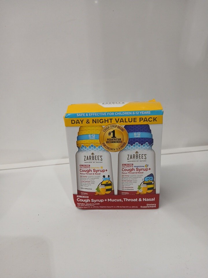 2PK kids zarbee's All-in-One Day & Night Cough + Mucus & Throat AND NASAL - 118 ML EACH DAY AND NIGHTIME - NATURAL GRAPE FLAVOR
