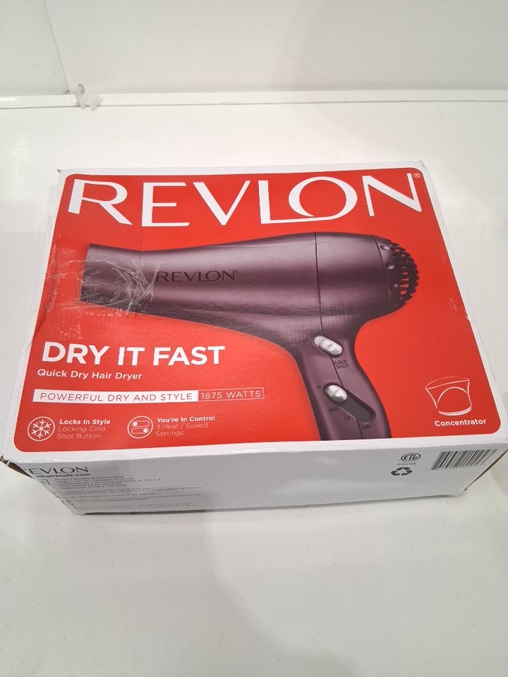 REVLON ESSENTIALS QUICK DRY 3-HEAT, COLD SHOT, STYLER BLOW DRYER WITH CONCENTRATOR - 1875W - PURPLE (MODEL: RVDR5104FN3)