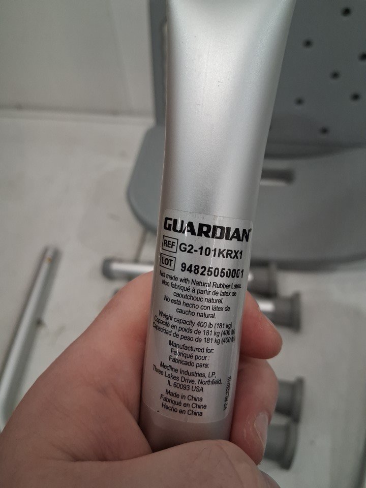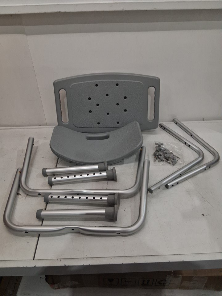 MEDLINE GUARDIAN BATH CHAIR WITH BACK AND SUCTION CUP FEET - HEIGHT ADJUSTABLE LEGS - 400LBS CAP - GREY (MODEL: G2-101KRX1)