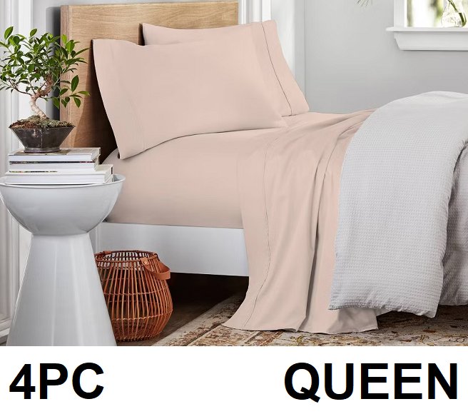 4pc purity home ultimate percale cotton solid sheet set - queen - blush pink
