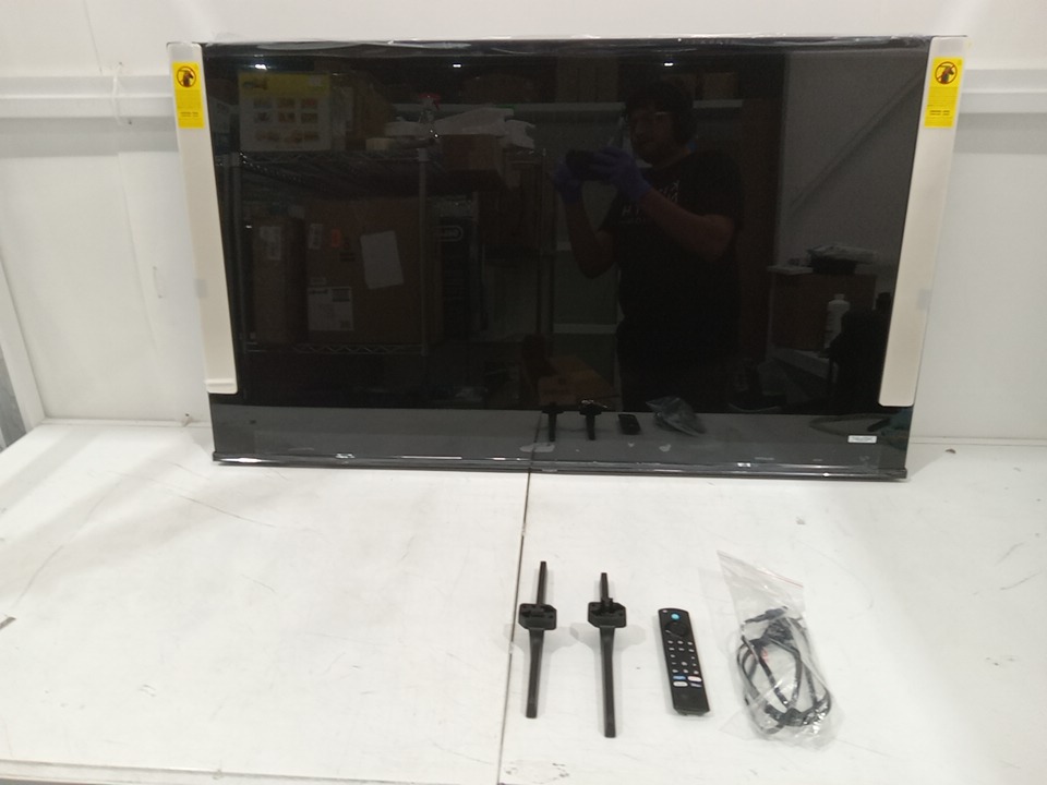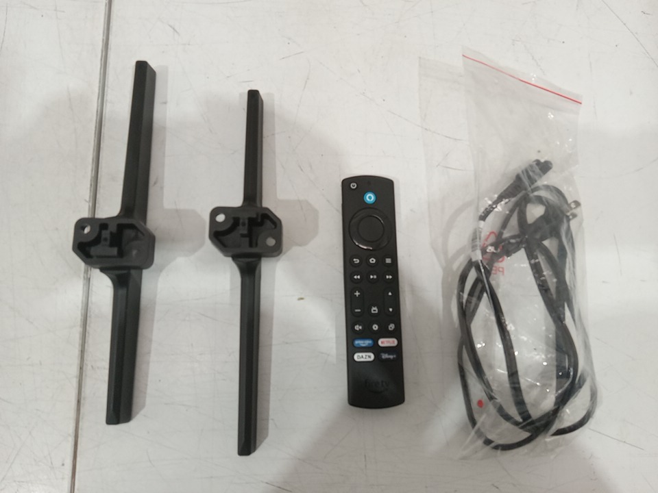 The manual is missing from the original packaging, and there are minor scratch marks on the remote due to shipping. The TV itself appears to be new. Tested for power and functionality. (Pleas see photos)
