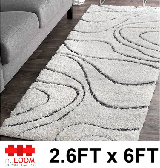 nuLOOM Pattern Shag Collection Carolyn Cozy Soft & Plush Shag Runner Rug - 2.6FT x 6FT - Beige (OZSG08B)