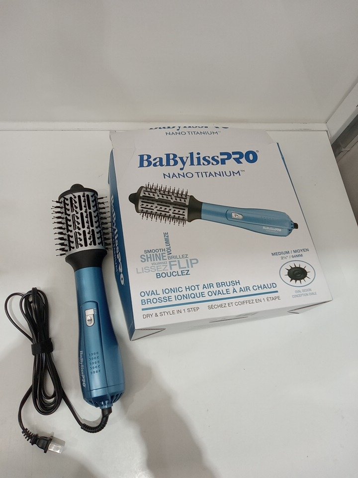 BABYLISS PRO NANO TITANIUM OVAL IONIC HOT AIR BRUSH - 3" - BLUE/BLACK (MODEL: BNTHB300C)