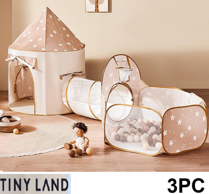 3pc Tiny Land Kids Play tent with tunnel, ball pit and carry bag - Pink/White