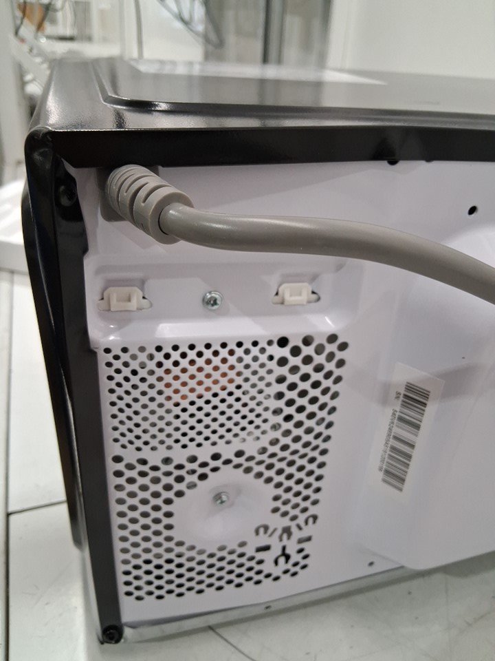 microwave has some minor dents on back and side by keypad. button to open door is not working, followed lock/ulock directions, could be wiring issue.