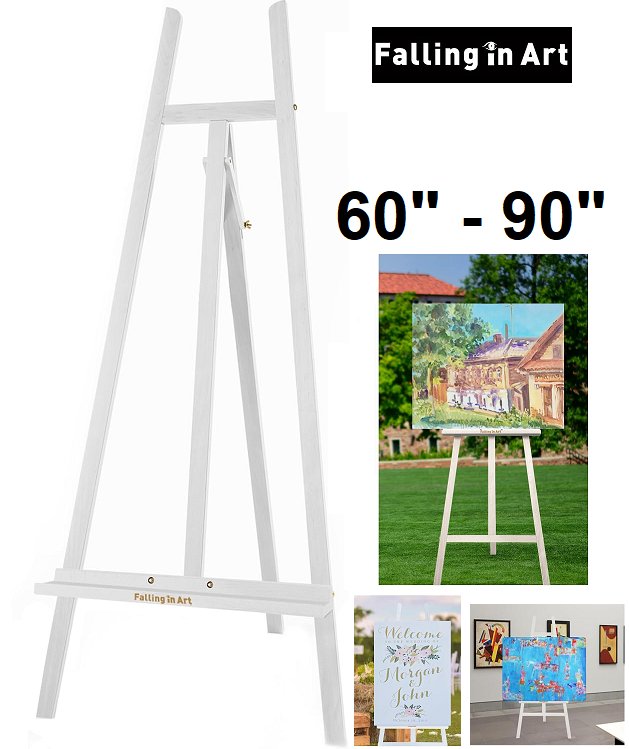 Falling in Art White Studio Easel Adjustable Tripod – Fits 60" to 90" Canvas – Solid Wood/white – (Model: CA0487)