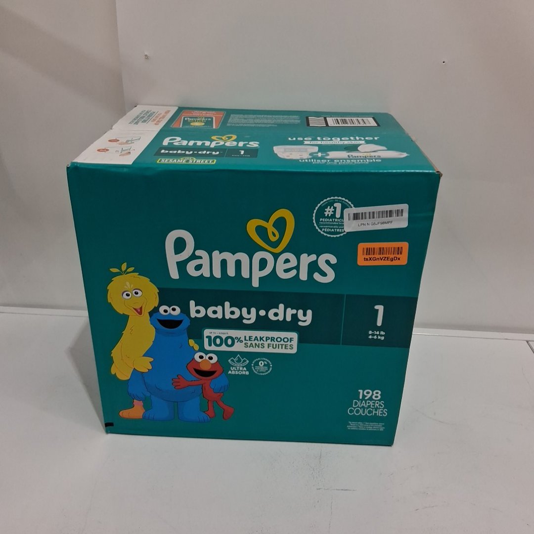 198pk pampers baby-dry leakproof disposable diapers - size 1 (8-14lbs) - sesame street