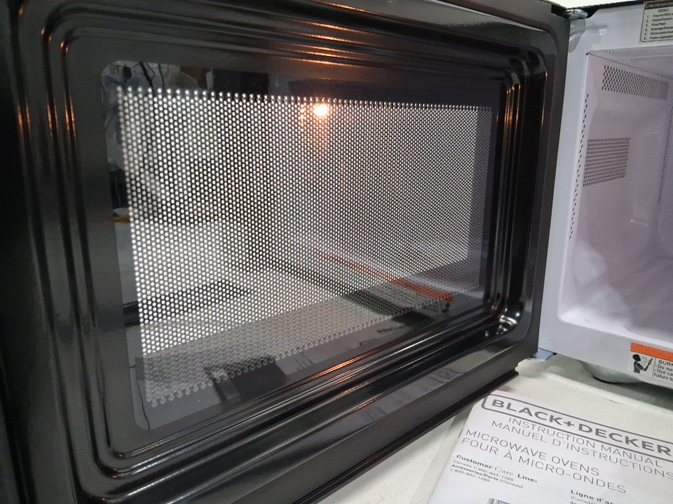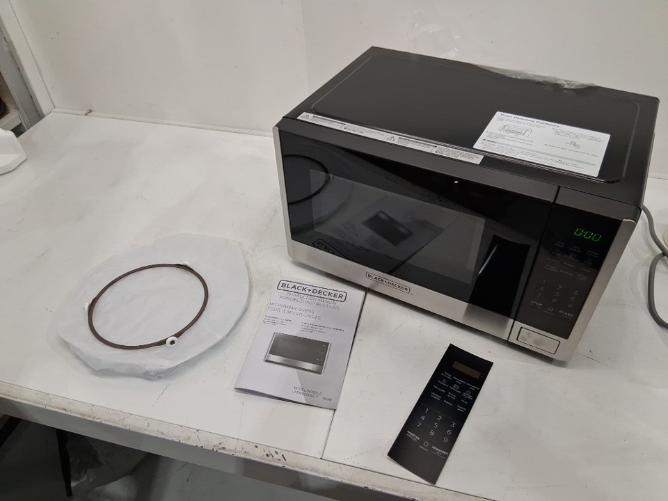 BLACK+DECKER Digital Microwave Oven with Turntable and Push-Button Door - 0.9Cu.Ft - Black (MODEL: EM925AB9-P)