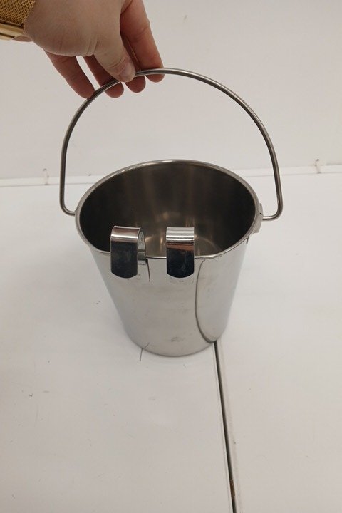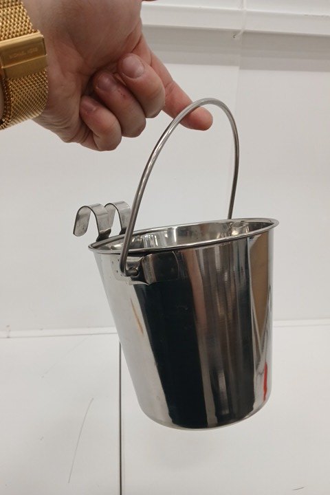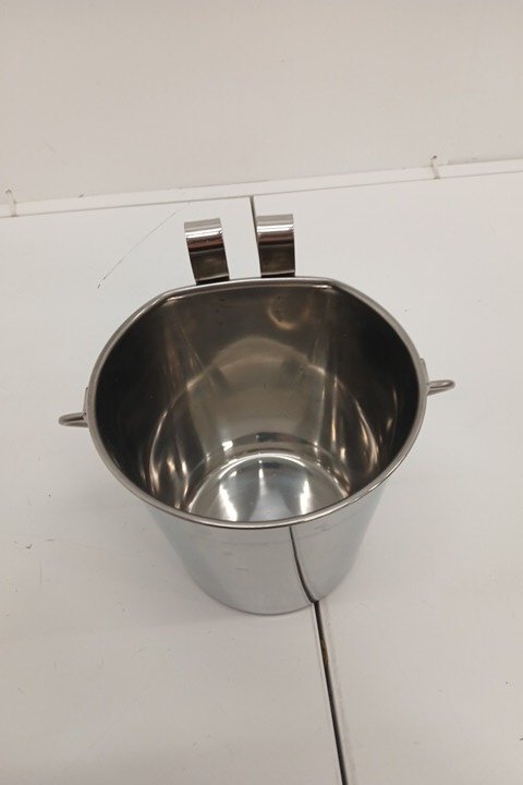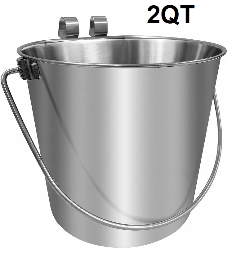 PetYupp Heavy Duty Stainless Steel Flat-Sided Hanging Bucket with Dual Hooks- 2 Quart
