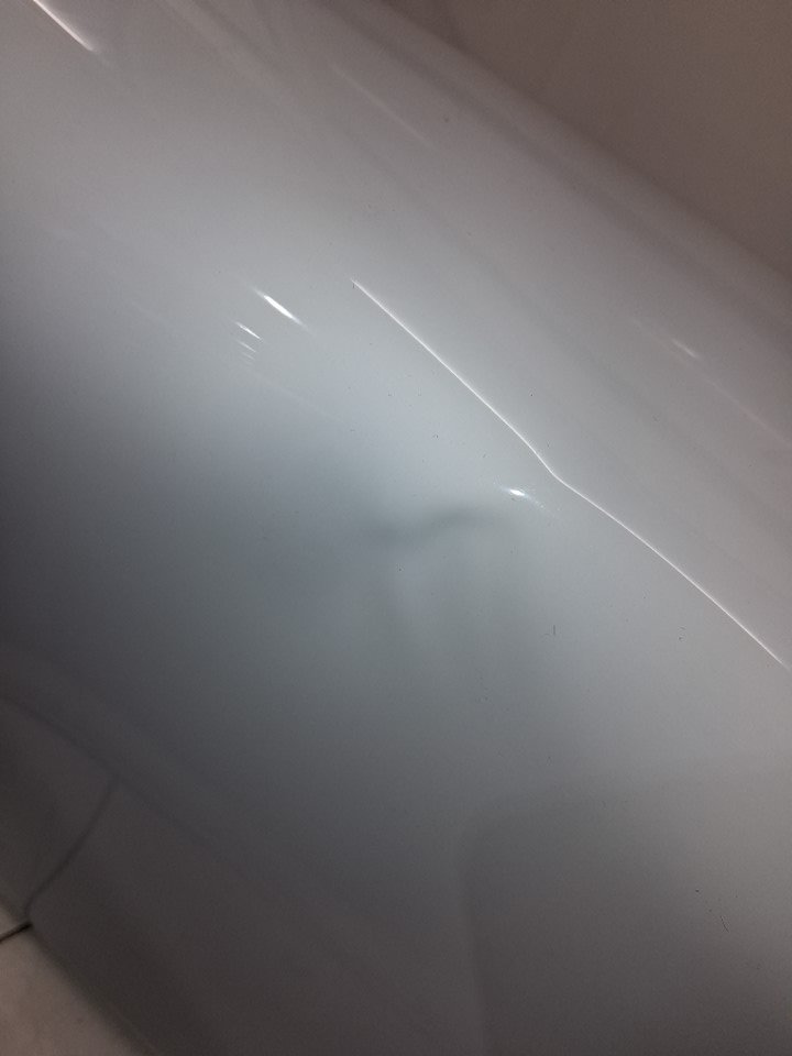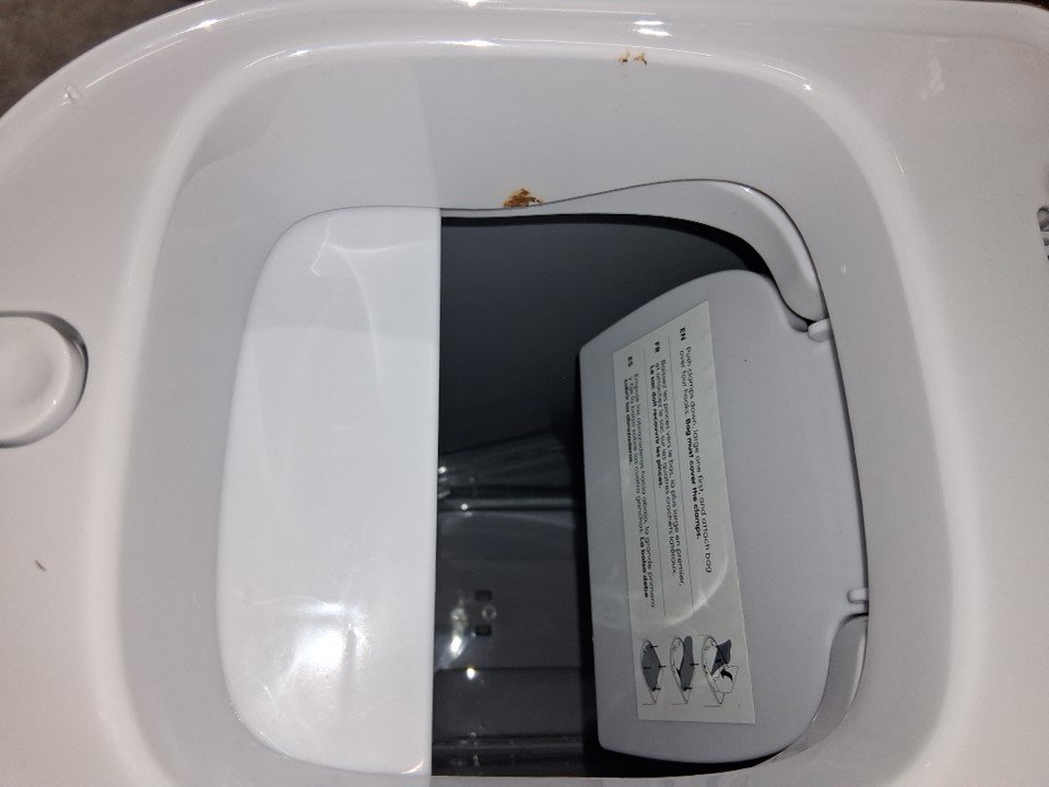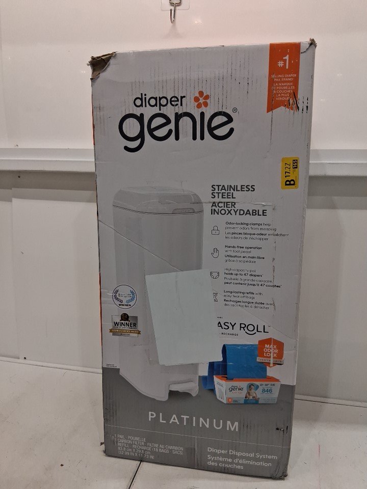 there is a dent on the side of diaper genie and some baby poop on the inisde of lid, see photos.