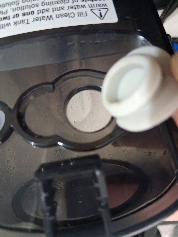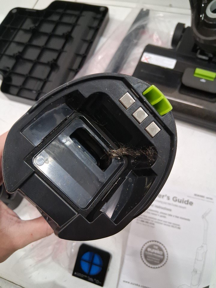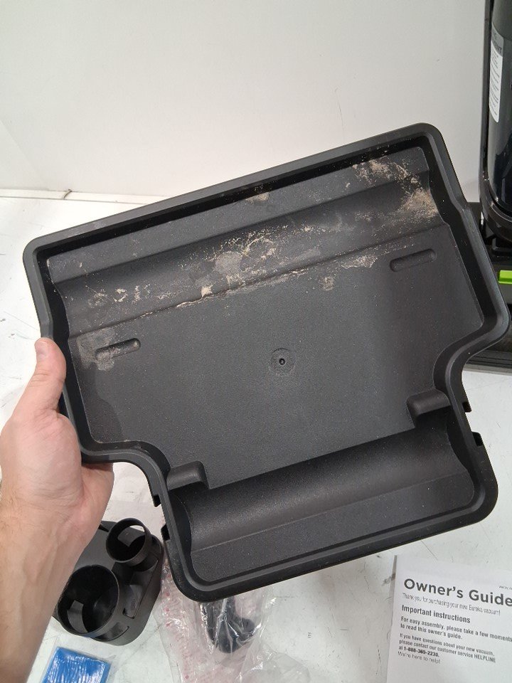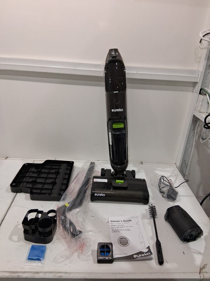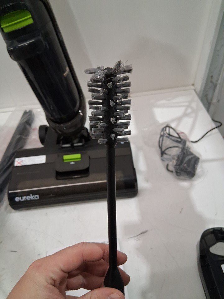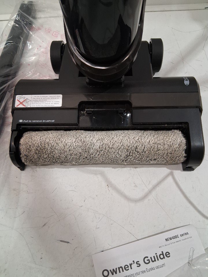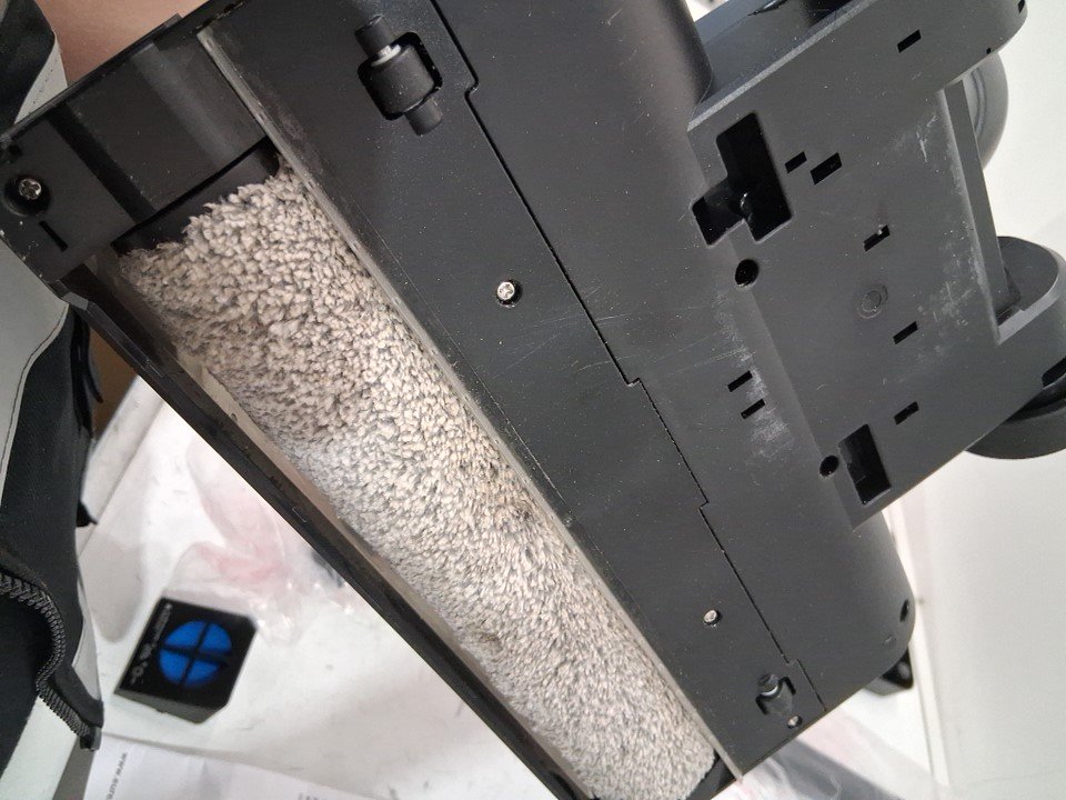 The unit shows heavy signs of prior use, including visible wear on the brush roll, water tank, and exterior housing. , and some discoloration is present on the cleaning head from extended use. Both clean and dirty water tanks show residue buildup and will require thorough cleaning before use. The vacuum powers on, and suction/mop functions appear operational, but long-term battery health and full run‑time were not verified. Refer to photos for detailed cosmetic condition and included accessories.