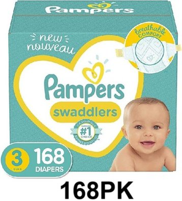 168PK PAMPERS SWADDLERS DISPOSABLE DIAPERS - SIZE 3 - (16-28LBS)