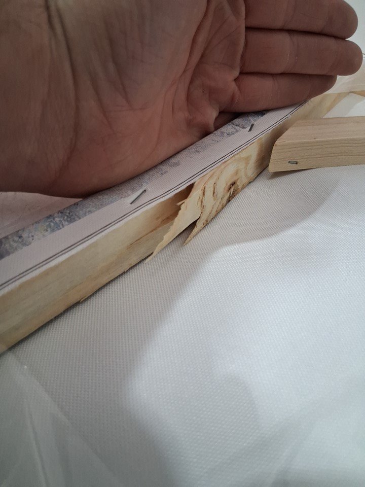 the frame of the painting is cracked causing the painting to be loose on the frame please see photos
