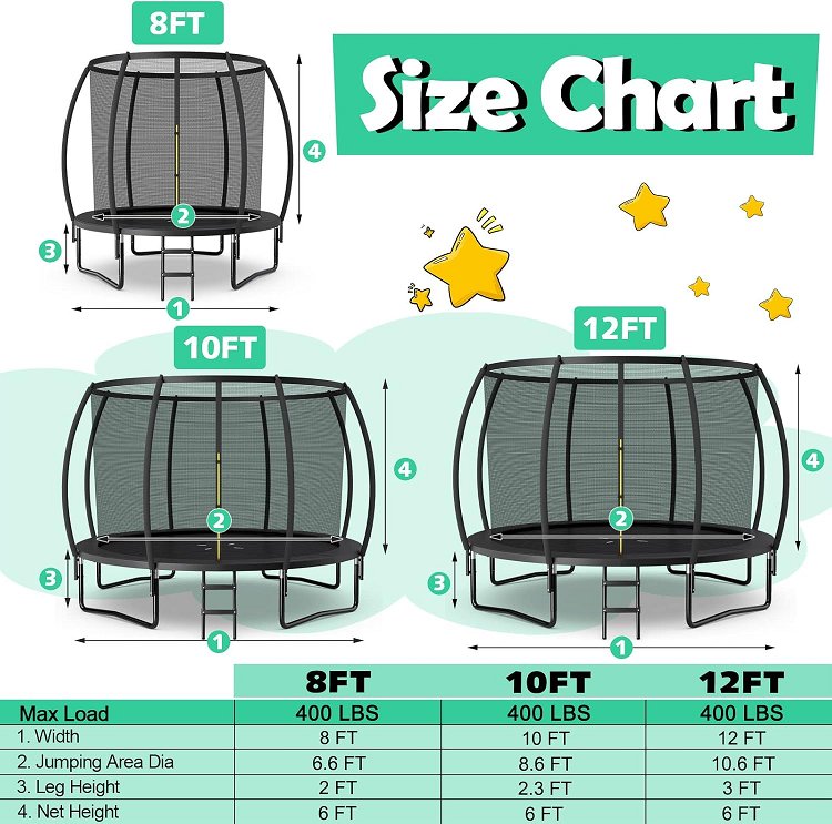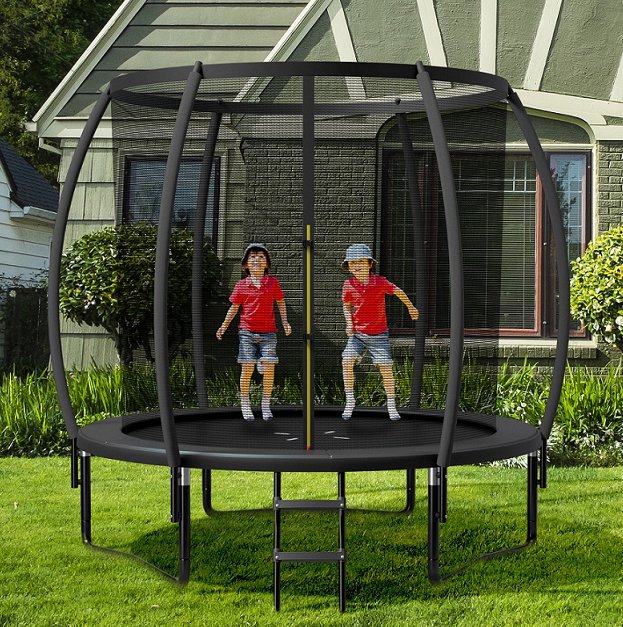 (2boxes) Giantex Round Outdoor Trampoline with Enclosure Safety Net Double-Side Galvanized Steel Frame, Curved Poles, Thick Safety Pad, Included Ladder, UV-Resistant Mat and Weatherproof Design - 8ft 10FT 12ft - Black (model: tw10071bk) * 2 box item *