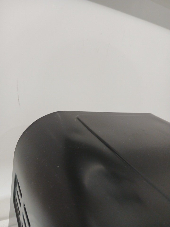 tested for power some grease and crumbs can be found inside of the item small dent on top of the item