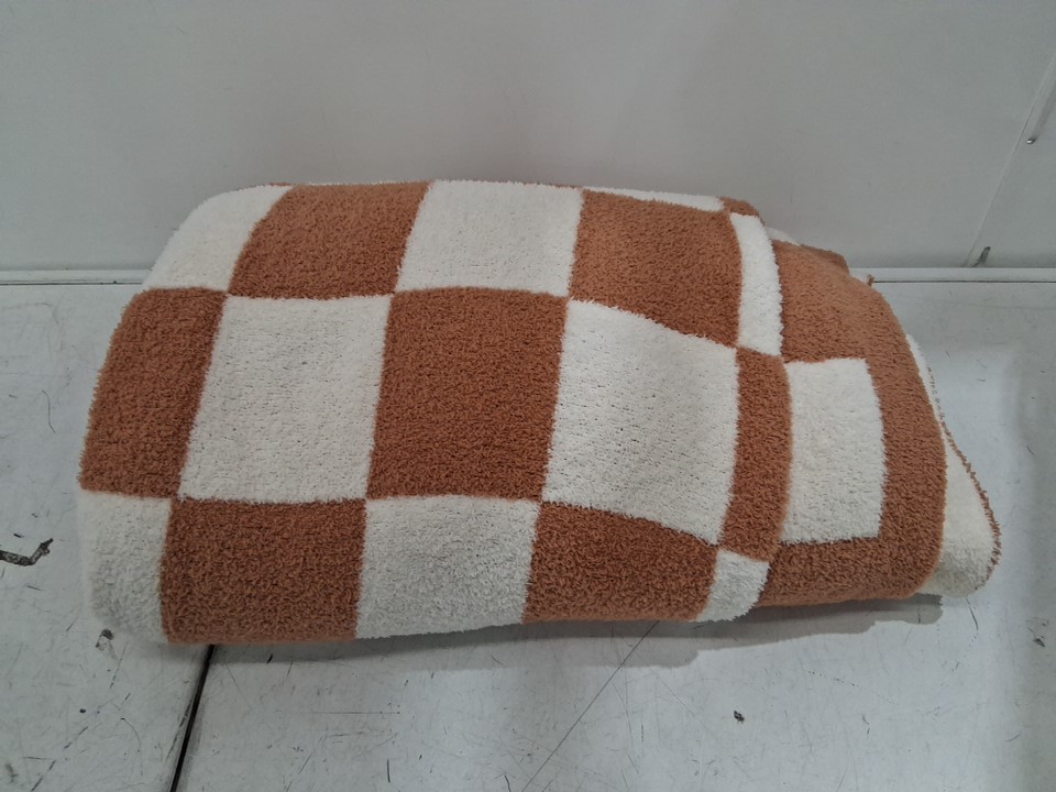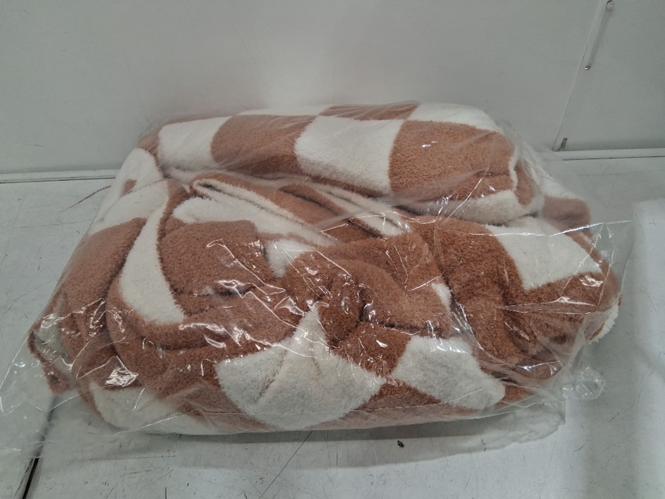 bedelite reversible soft cozy fuzzy blanket - 50" x 60" - checkered khaki - White/Brown