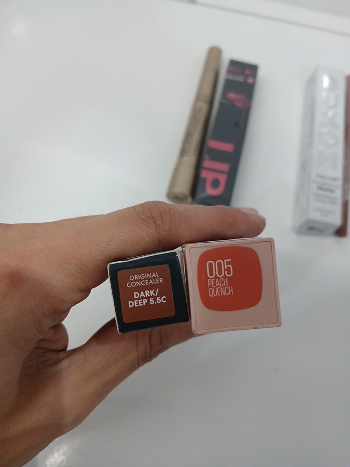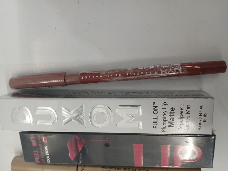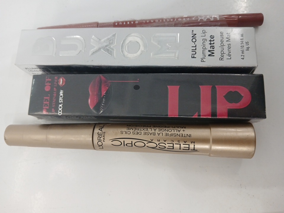 6 ASSORTED MAKEUP PRODUCTS- ASSORTED COLORS, TYPES AND BRANDS - CONCEALER/ EYE LINER/ MASCARA / lipsticks/ lip pencil