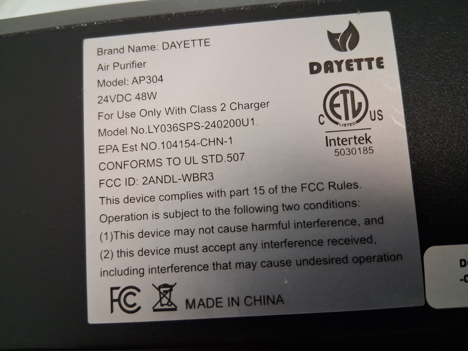 Please note the item has dirt marks and scuffing and the filter is really dirty showing previous use. The item is missing the power cord but can be bought separately - MODEL NUMBER:LY036SPS-240200U1. We are unable to test the item as the power cord is missing.