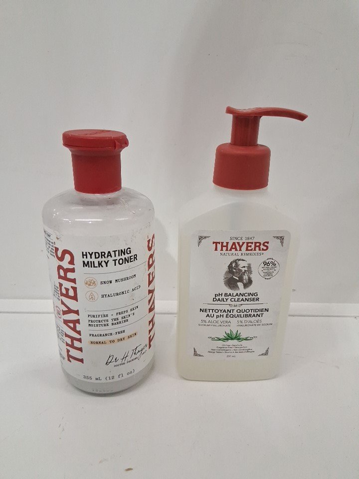 2 ASSORTED THAYERS FACIAL PRODUCTS - HYDRATING MILKY TONER & PH BALANCING DAILY CLEANSER