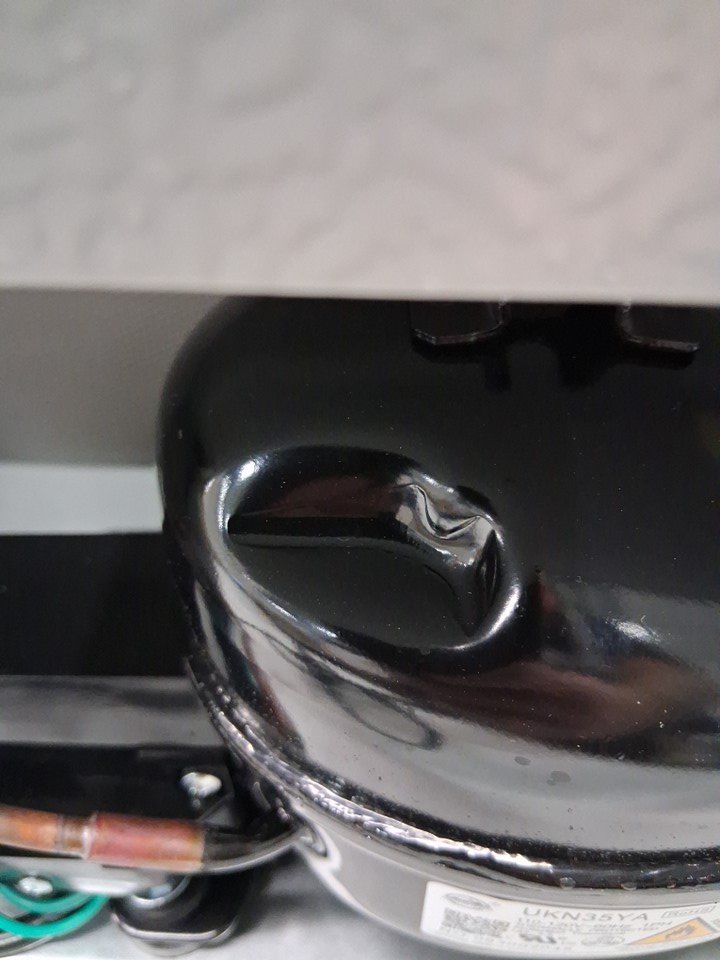 product has tents on the front door area and back of prodcuts motor has a dent but product has power and seems to be able to cool itself on the inside.