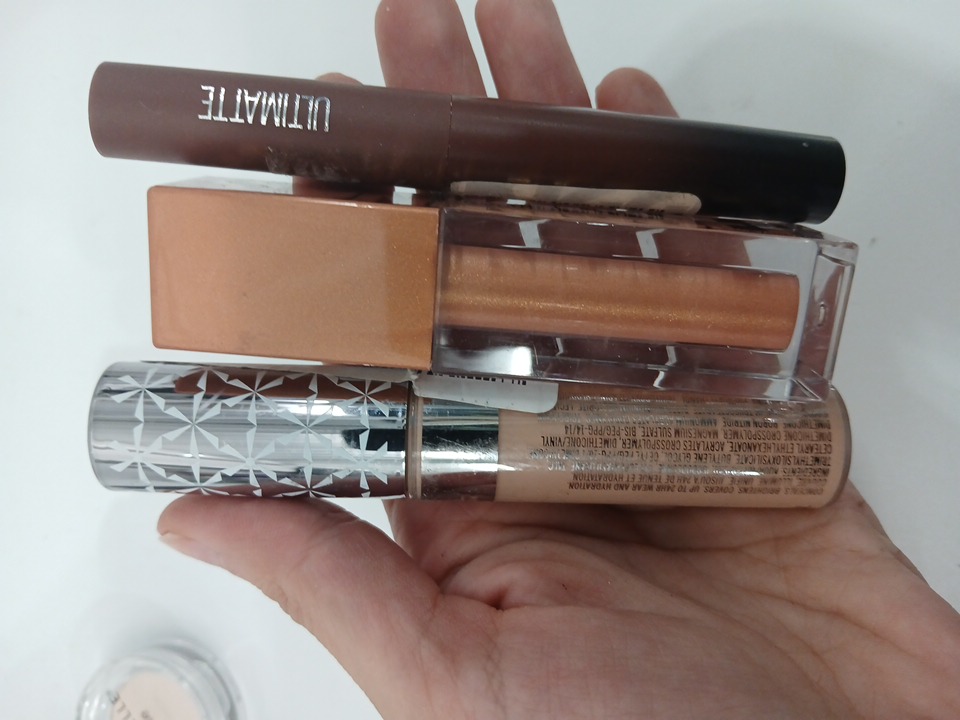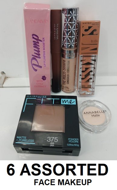 6 ASSORTED MAKEUP PRODUCTS- ASSORTED COLORS, TYPES AND BRANDS - powder/ lipsticks/ corrector/eyeshadow