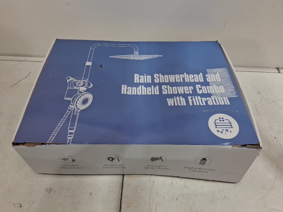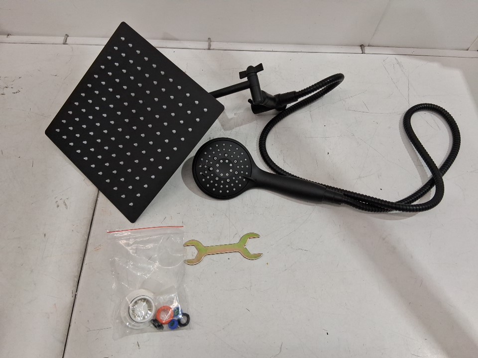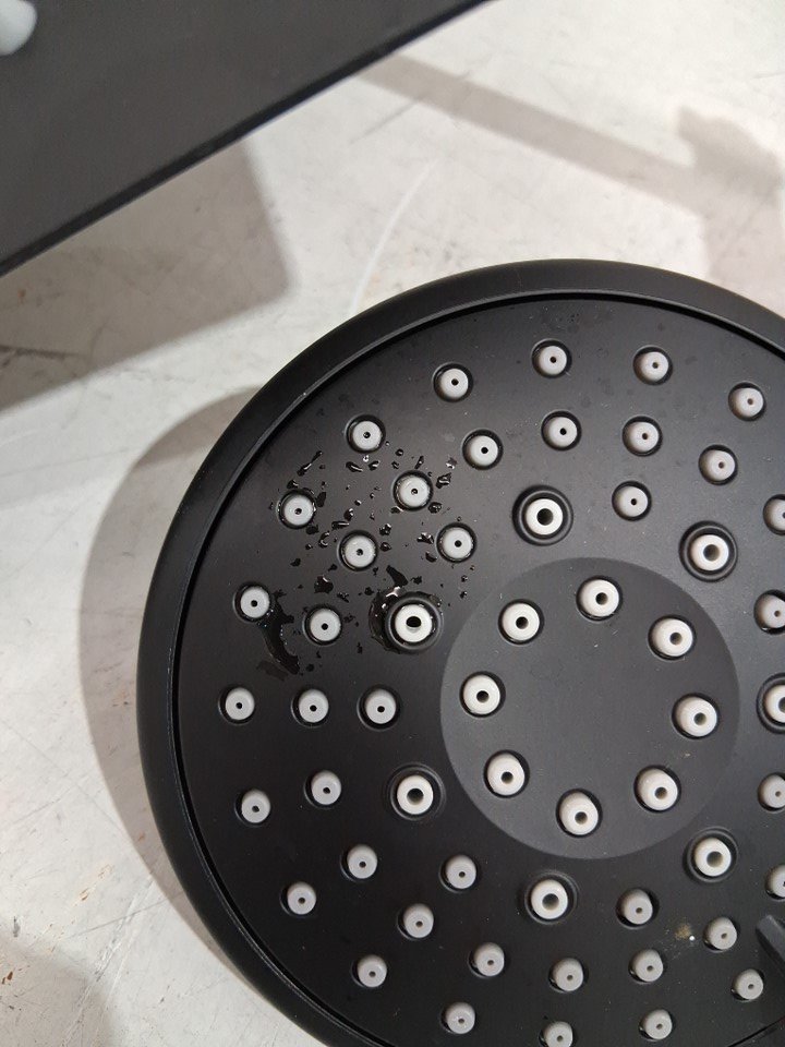 Item has water and marks from previous use. Also, it's missing the showerhead holder and the pipe which connects the shower to the wall. (See photos)