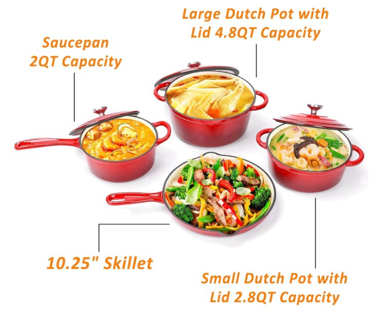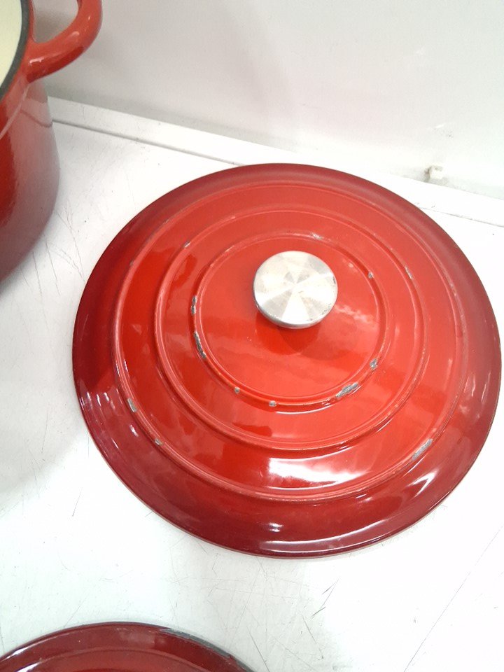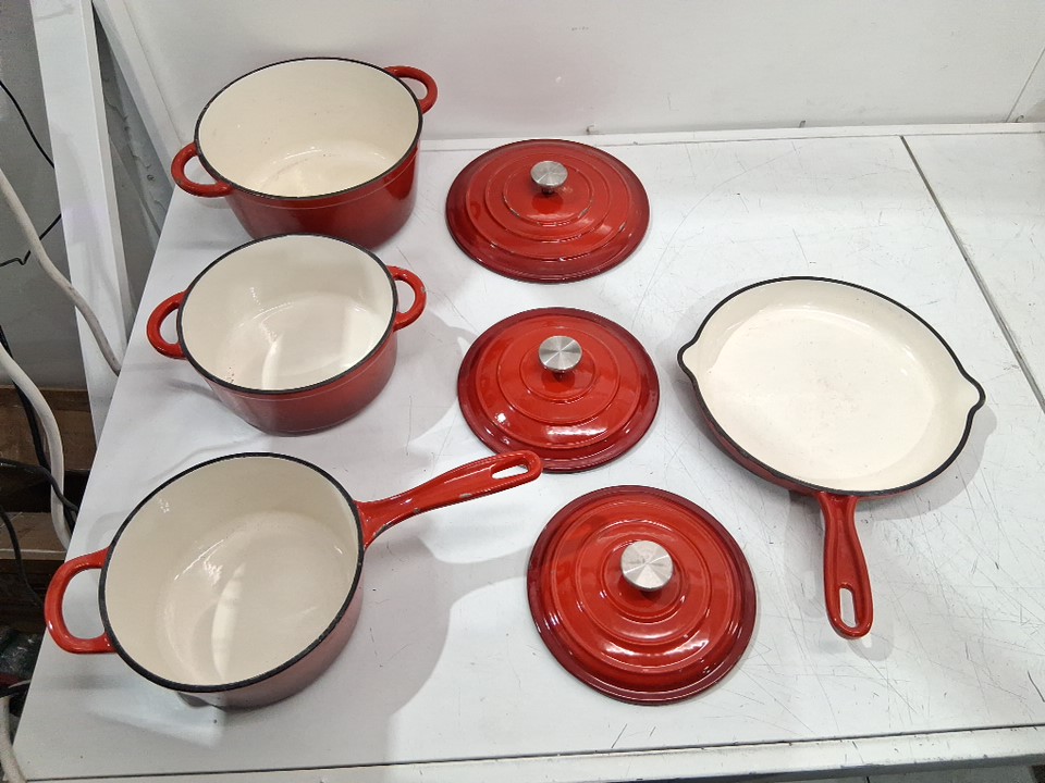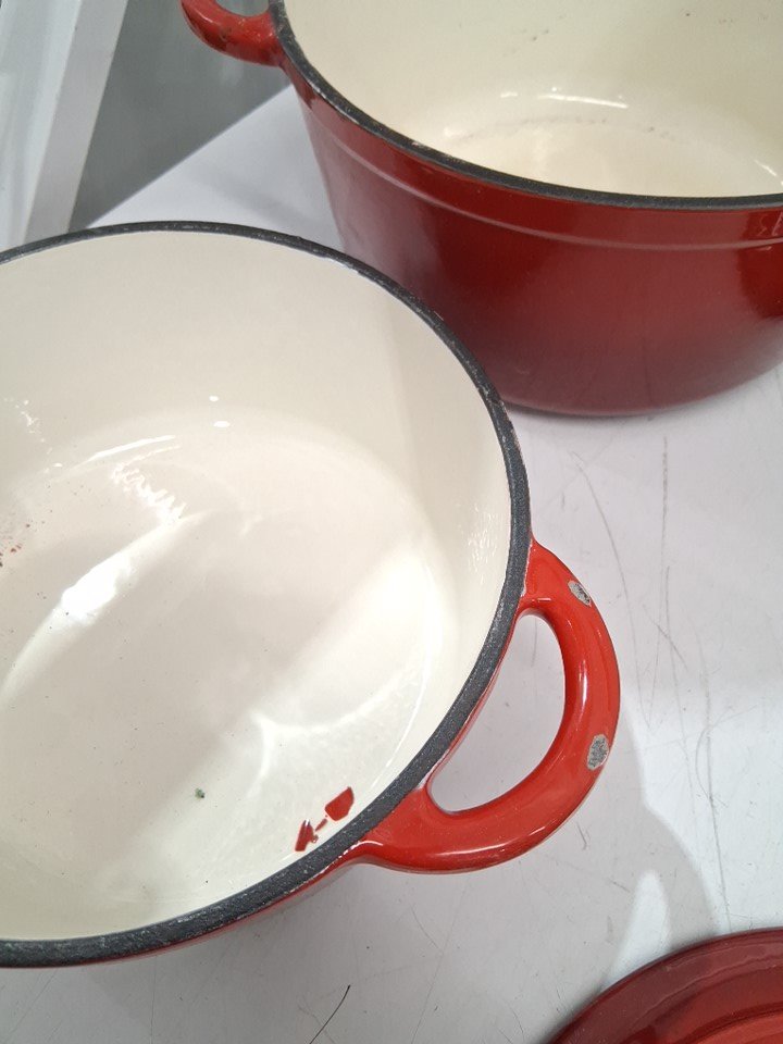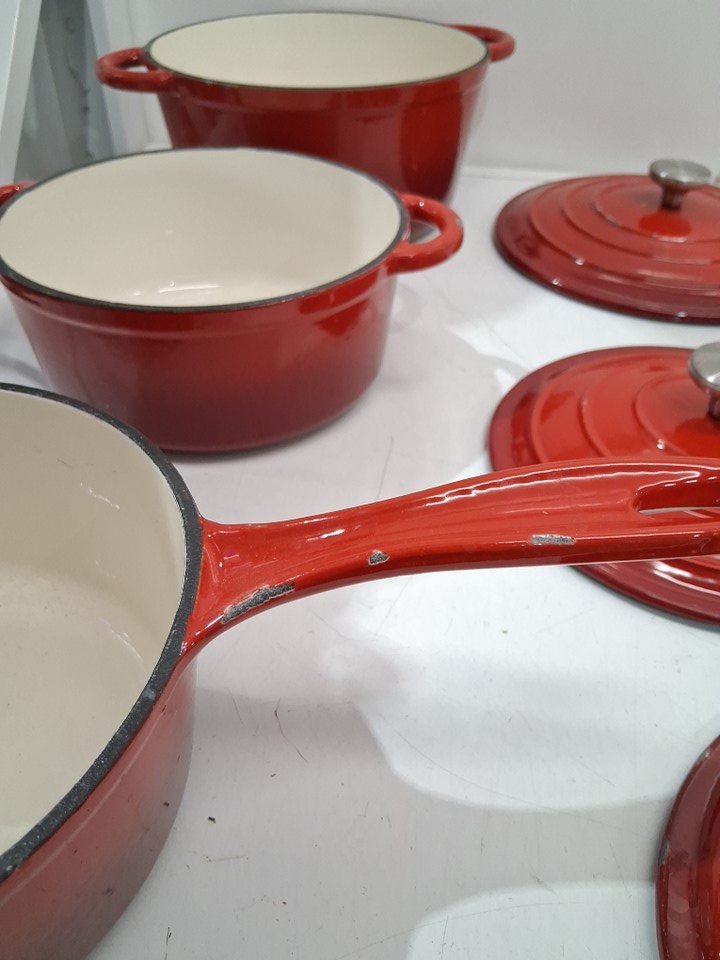 all the pieces have chips in the red enamel coating and have been used - see photos