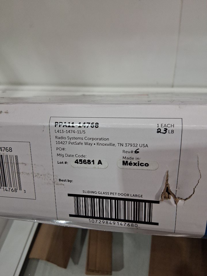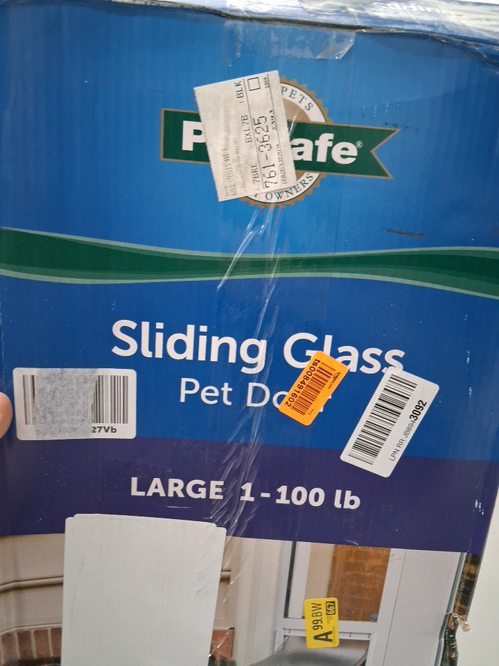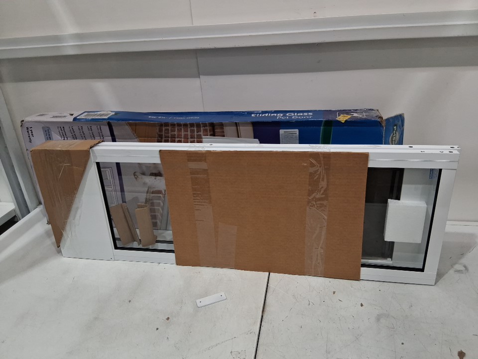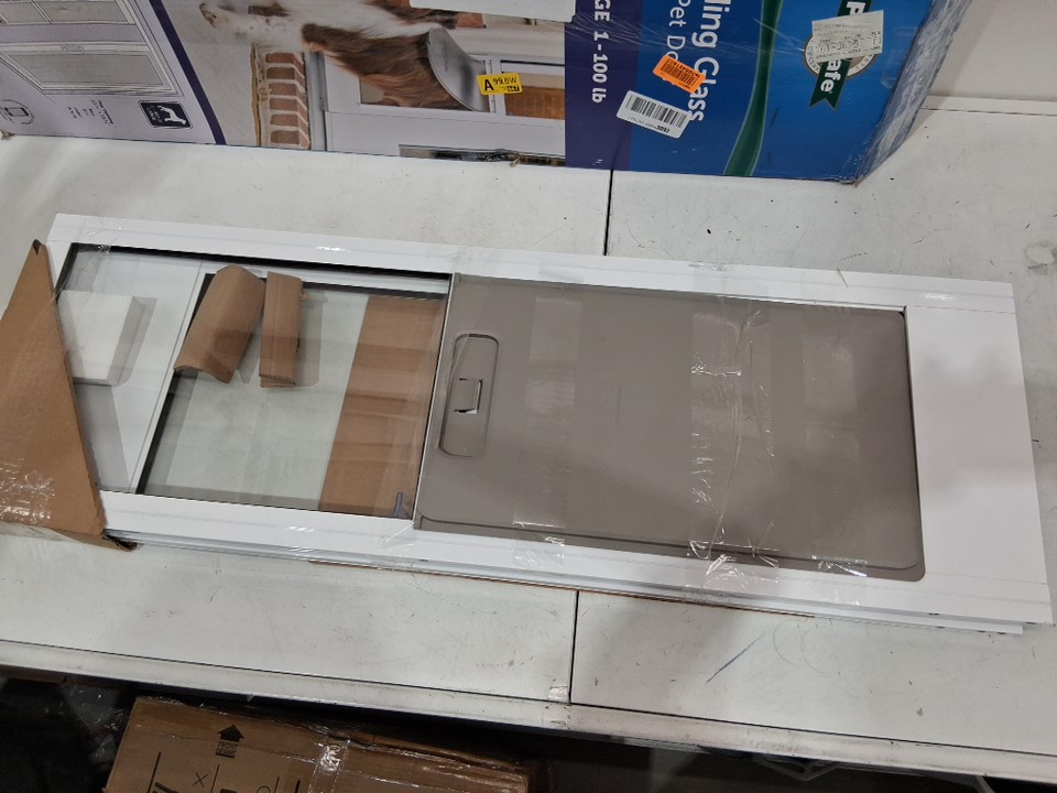 PETSAFE SLIDING PET DOOR FRAME - ALUMINUM PET DOOR W/ WINDOWS - LARGE 76.8" x 81" - WHITE (MODEL: PPA11-14768)