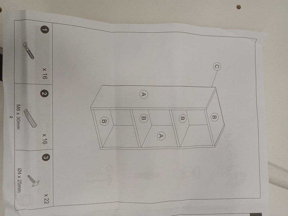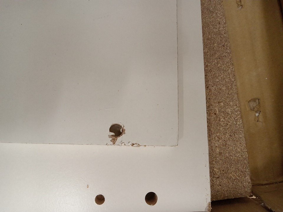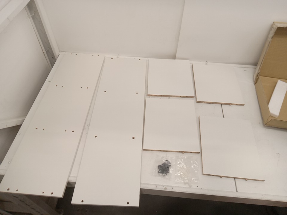 The item has some marks indicating prior assembly and is missing the back panel. See photos.