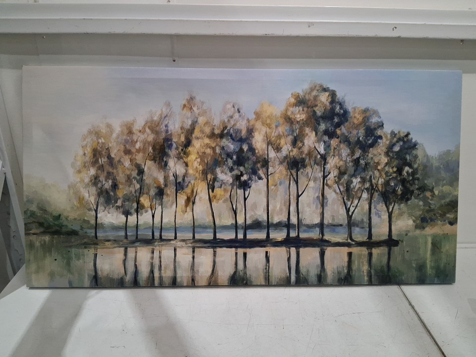 please note the canvas is slightly stretched in the middle and some marks on the back from shipping without packaging. However, it is still in good condition