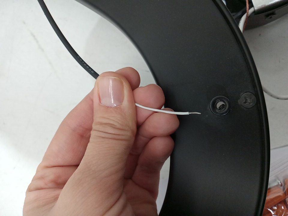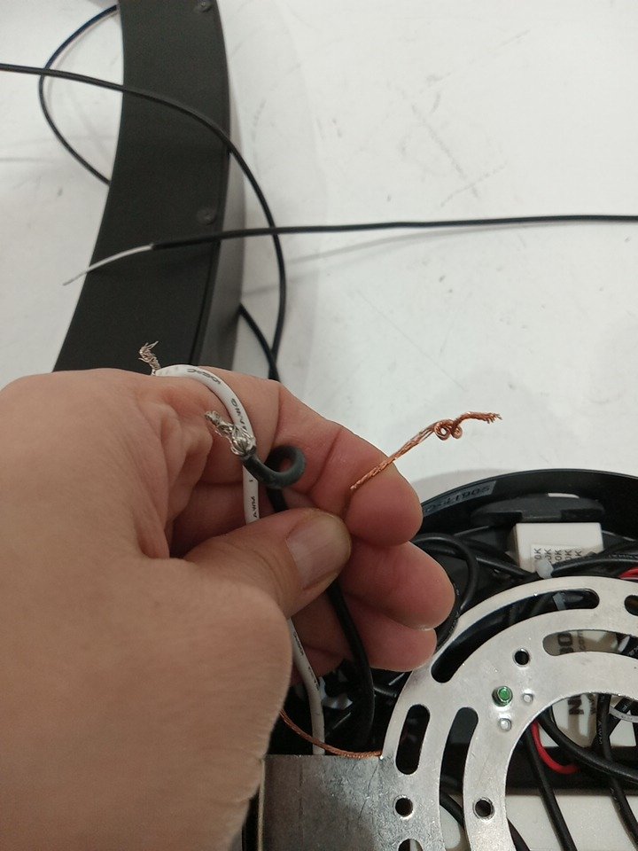 Has some stains, one wire is loose and the wires al a little bent but does not appear to have been installed
