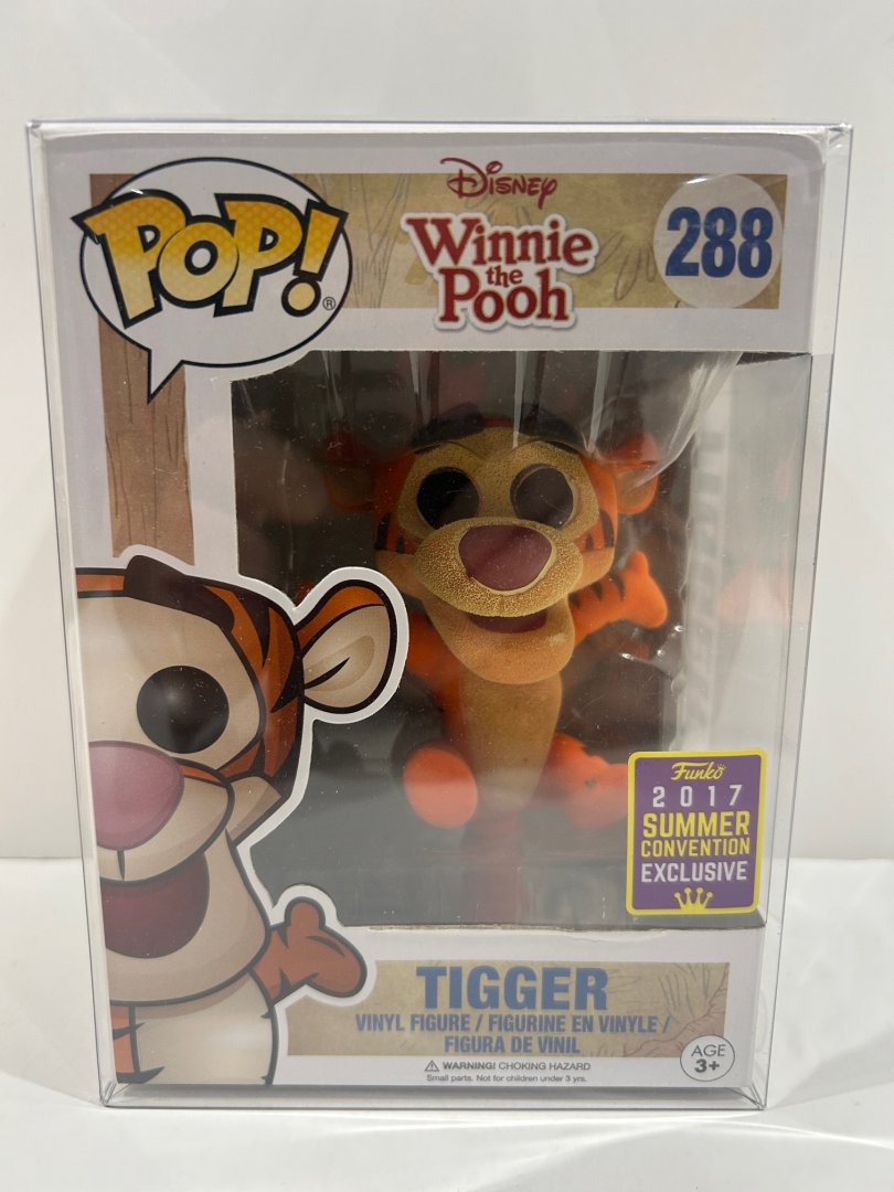 Funko pop! **flocked**2017 summer convention** Disney Winnie the pooh - tigger vinyl figure (#288) **plastic protector cover**