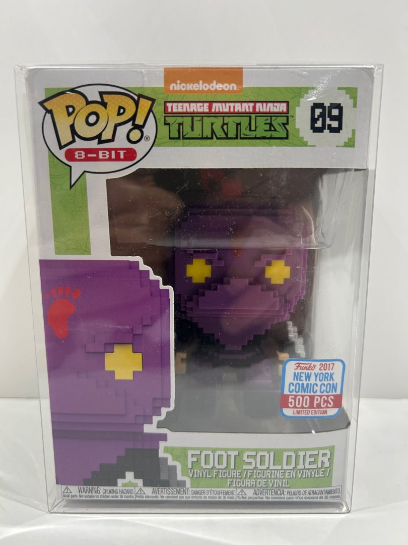 Funko pop! **2017 New York comic con limited edition 500pcs** 8-bit: Nickelodeon teenage mutant ninja turtles - foot soldier (purple) vinyl figure (#09) **plastic protector cover**