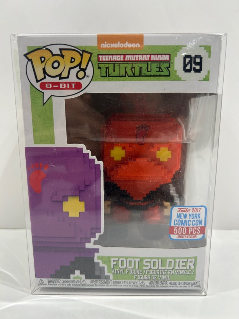 Funko pop! **2017 New York comic con limited edition 500pcs** 8-bit: Nickelodeon teenage mutant ninja turtles - foot soldier (orange) vinyl figure (#09) **plastic protector cover**