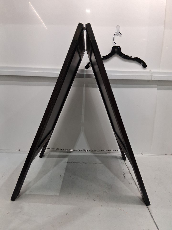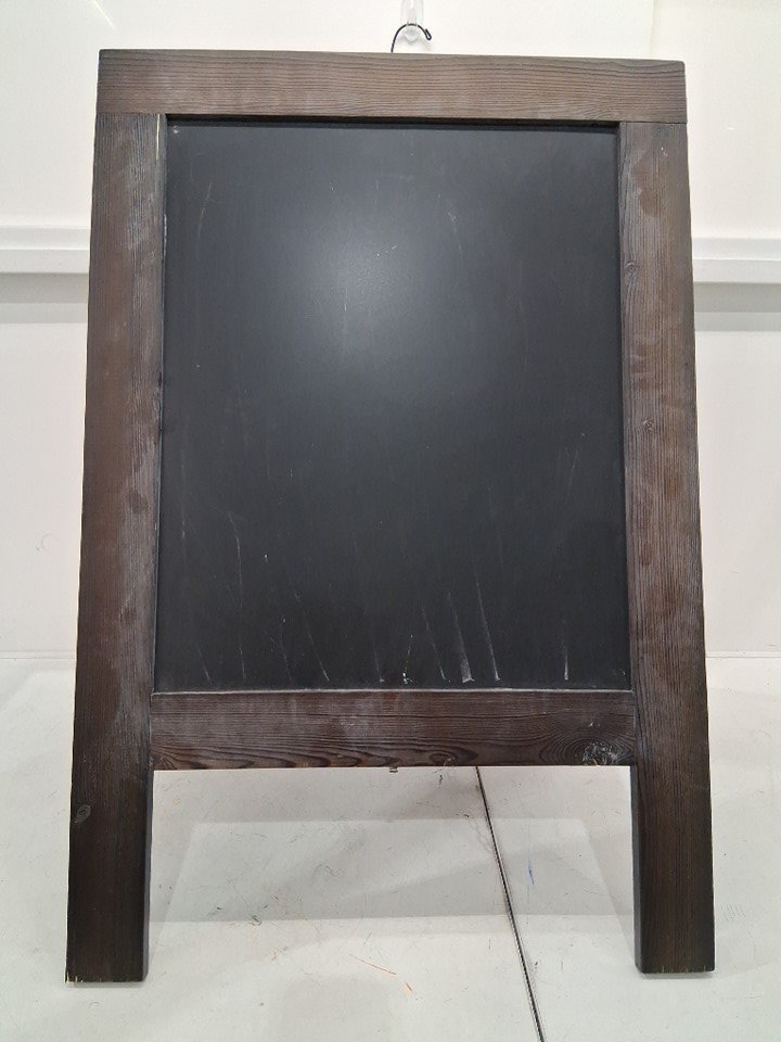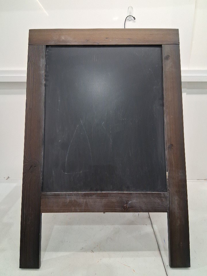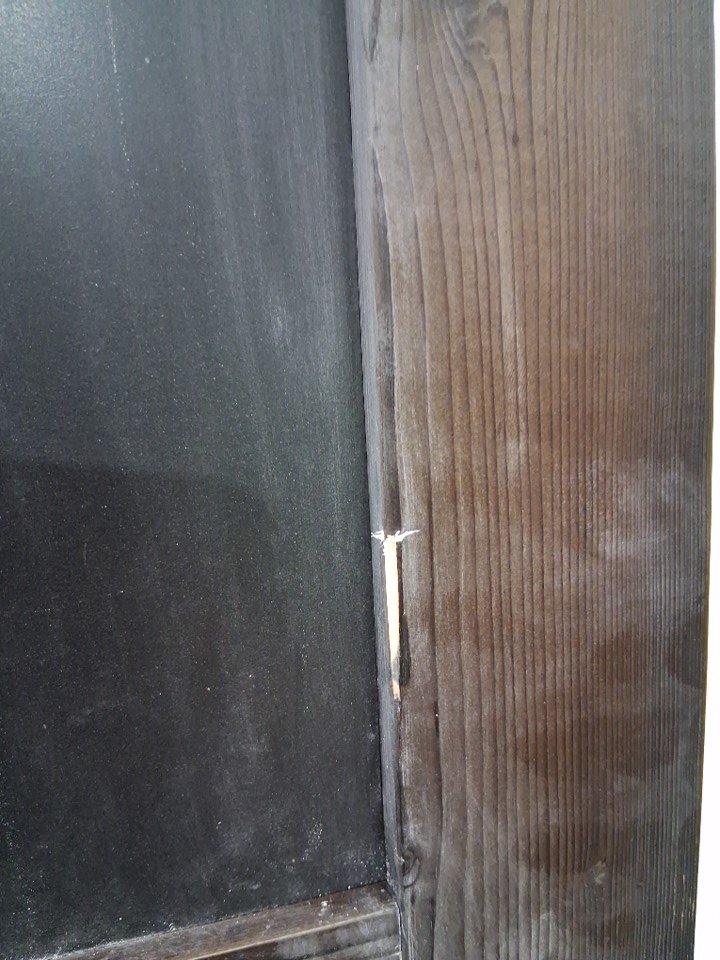 item has some residue leftover from previous use, a small chip out of the wood. pictured below