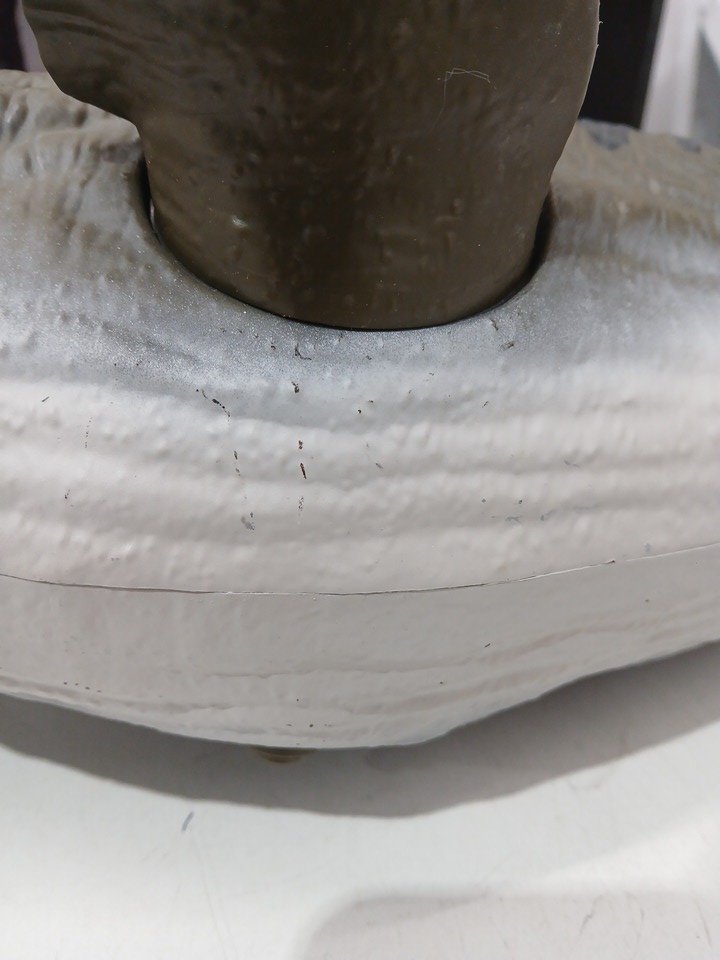 One of the front fins broke off. Minor scuffs on the surface.