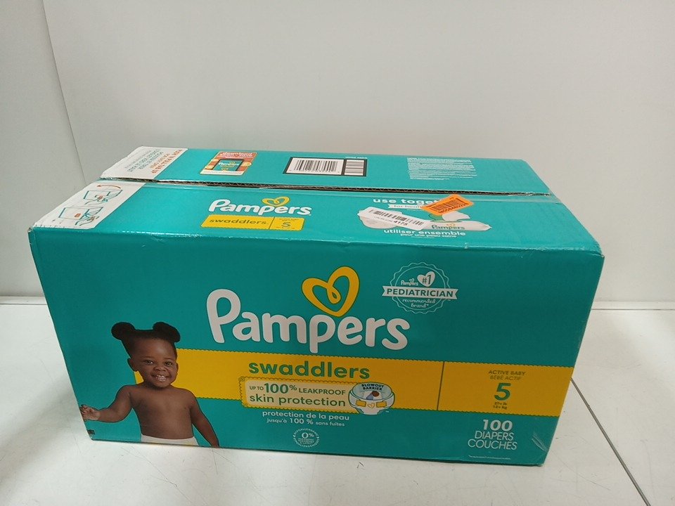 100PK PAMPERS SWADDLERS up to 100% LEAKPROOF BABY DIAPERS - SIZE 5