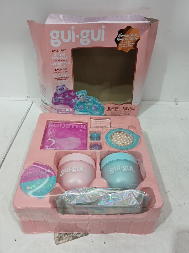 2pk Gui Gui Shimmer Deluxe Duo Pack, with 2 Iridescent Slimes, Pearl Bead Booster and 2 Glow-up and Finishing-Touch Sachets - pink/blue