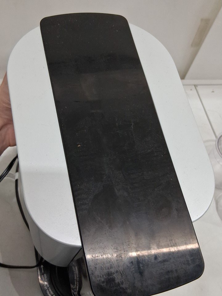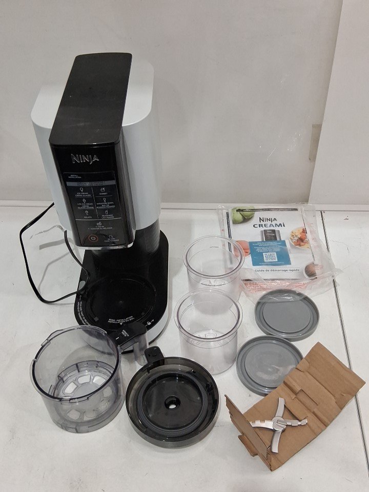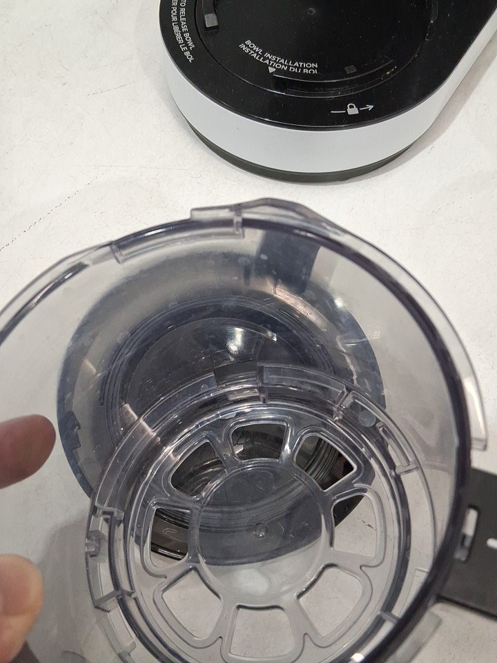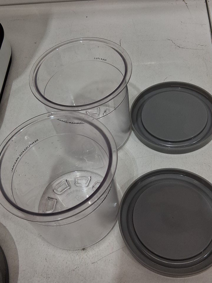 Item has some food debris around the rotor, residue markings in the containers and on the lids, cosmetic wear along the exterior from previous use, see photos.