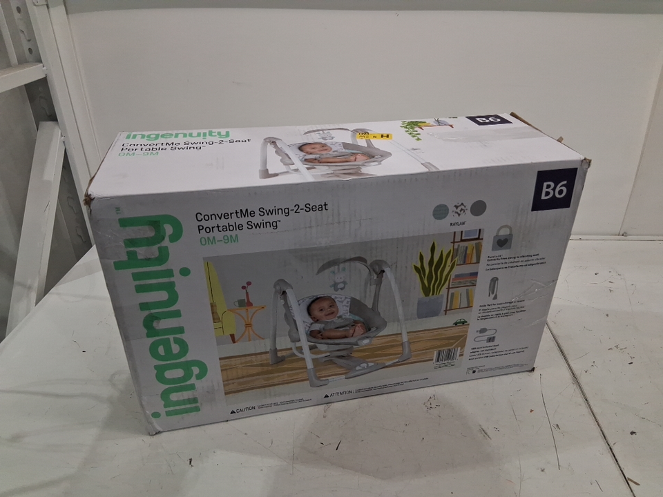 INGENUITY convertme 2-in-1 compact portable plug in automatic baby swing and infant seat - 0 to 9 months - 6lbs to 20lbs - grey (model: 12189-es)