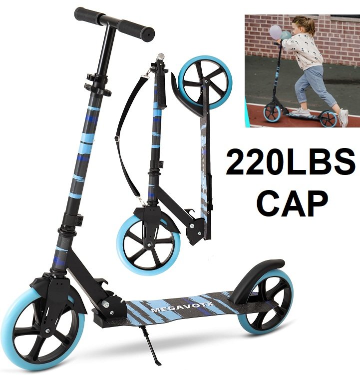 megavotx Megavotx Foldable Scooter Adjustable Handlebar with Carry Strap - holds 220lb - blue/black