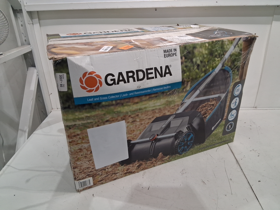 GARDENA LEAF AND LAWN COLLECTOR, PUSH OPERATED HEIGHT ADJUSTABLE - BLACK/BLUE (MODEL: 3565)