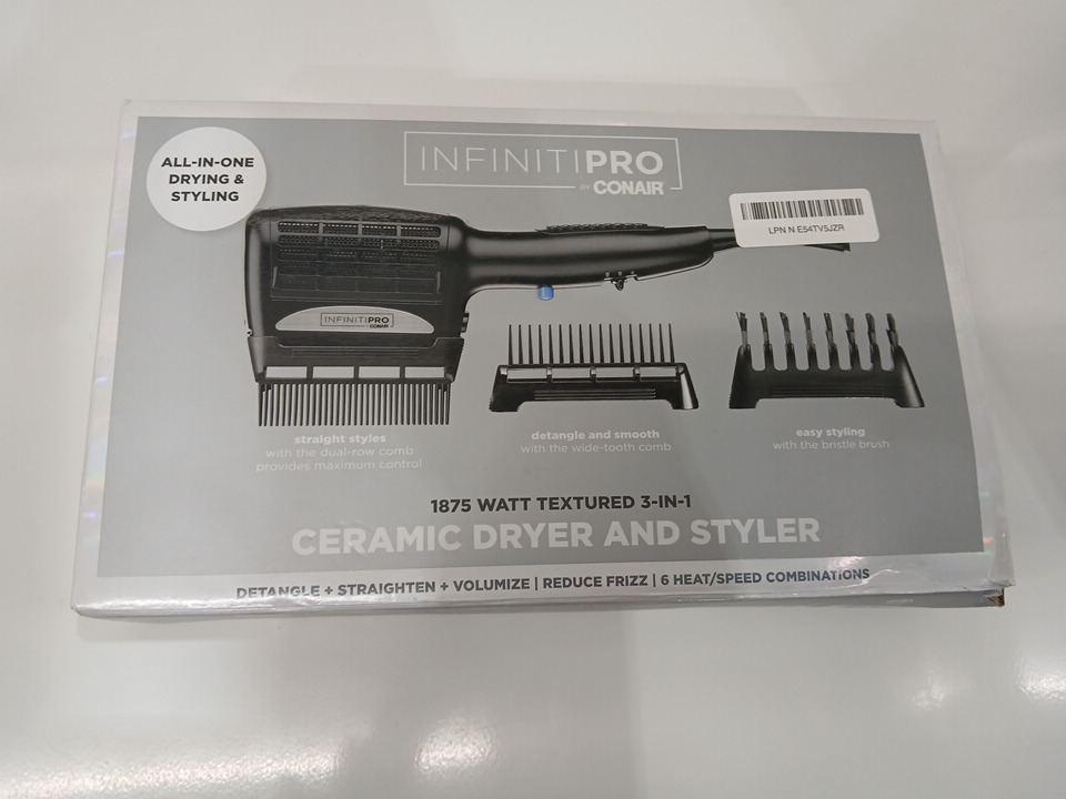 InfinitiPro by Conair 3-in-1 Ceramic Texture Dryer and Styler Brush - Black (Model: SD9C)
