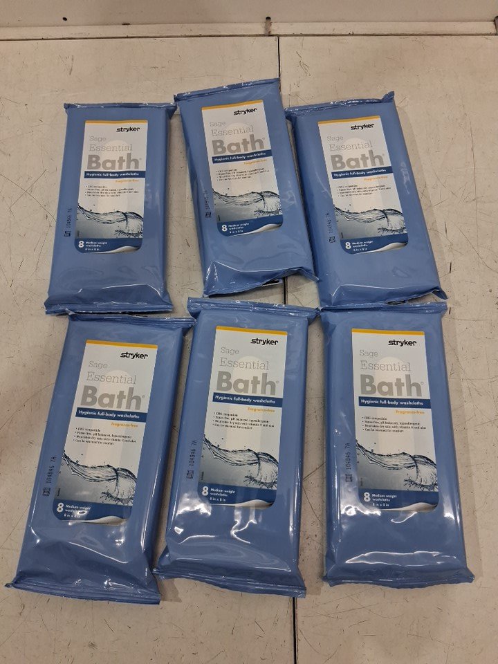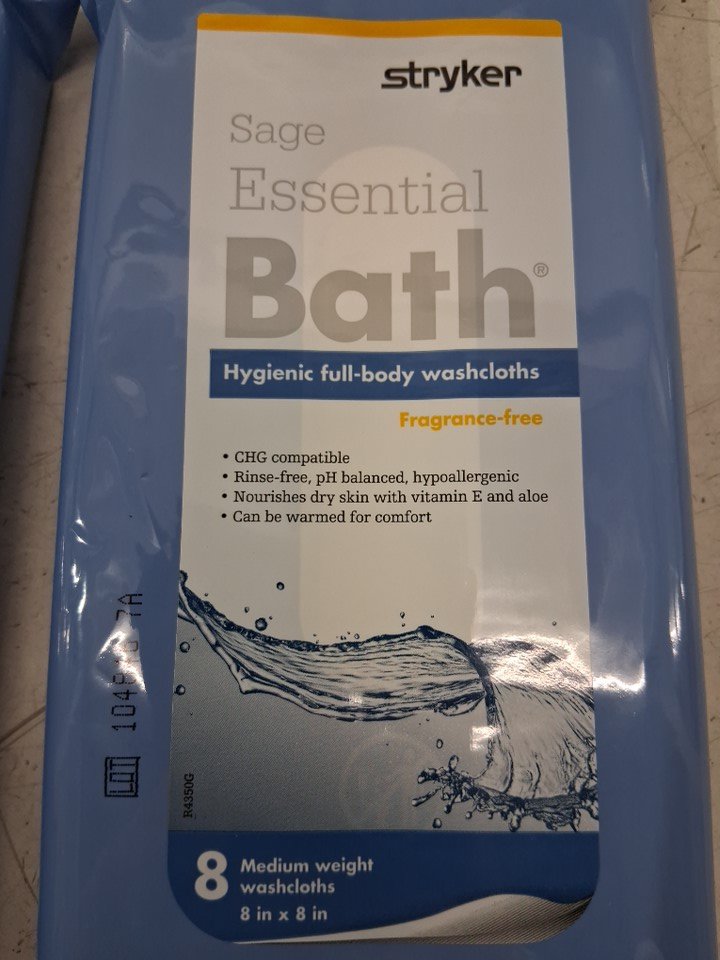 (6) 8pk stryker Sage Essential Bath Cleansing Washcloths - 8" x 8" each - 48 cloths total - white (model: 062935)
